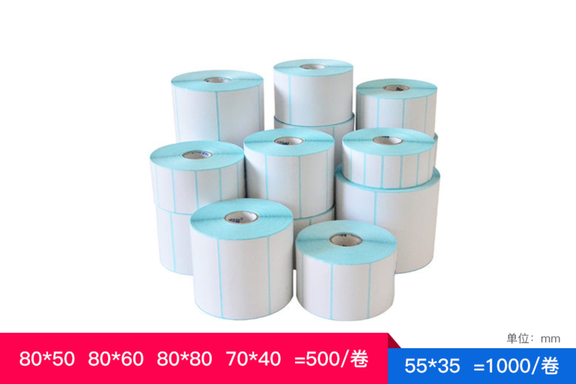 | 50*30 800片/卷 | 55*35 1000片/卷 | 80*50 500片/卷 |