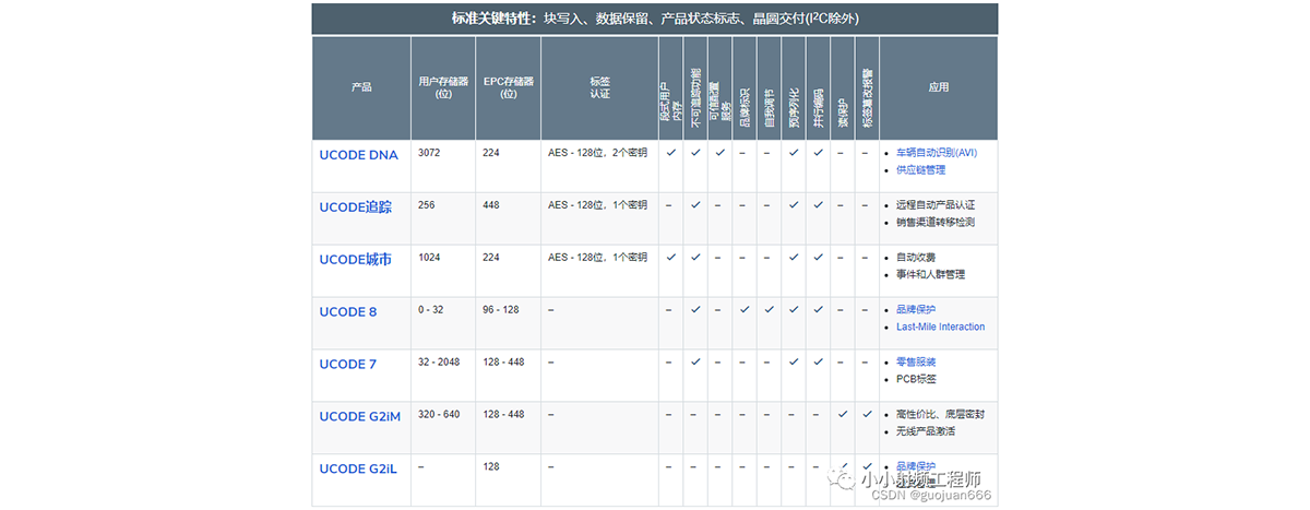 如U7,就包含了Ucode7、Ucode7m、Ucode 7Xm-1k、Ucode7xm-2K、Ucode 7xm+。前兩款屬于高靈敏度,小內(nèi)存的。后三款內(nèi)存較大,靈敏度略低。
