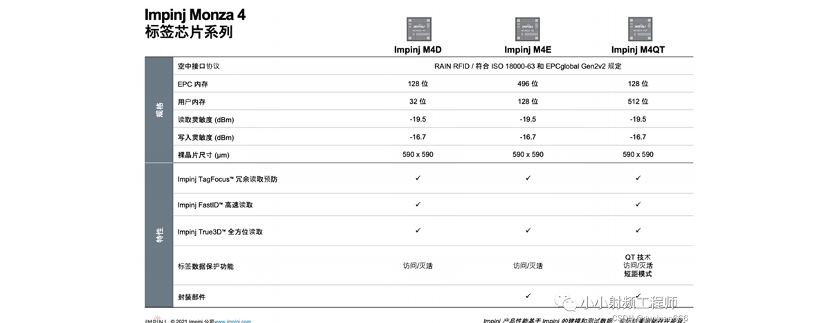 Impini的超高頻芯片以Monza系列命名。從M3、M4、M5、M6,一直更新到最新的M7。哦!還有一個(gè)MX系列。